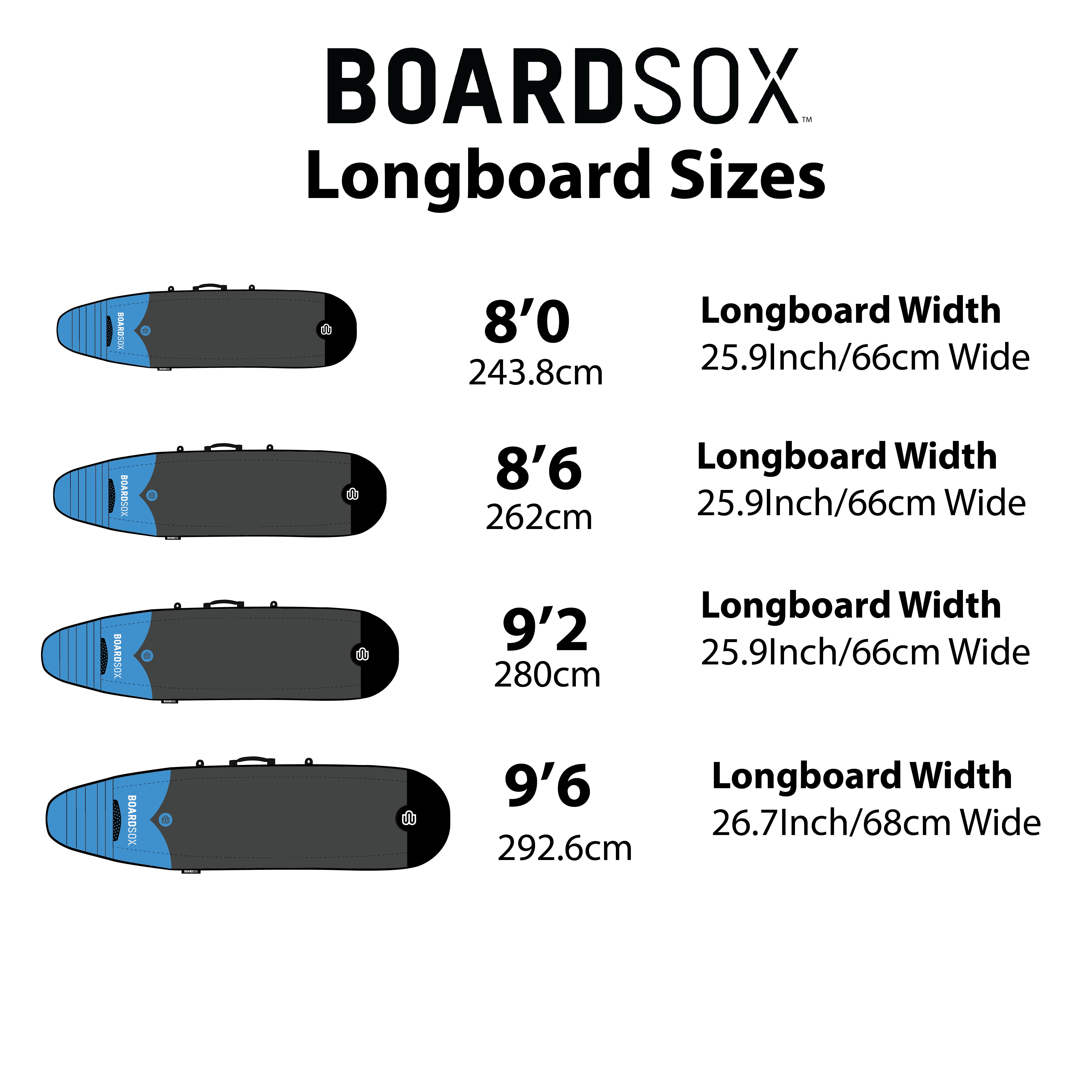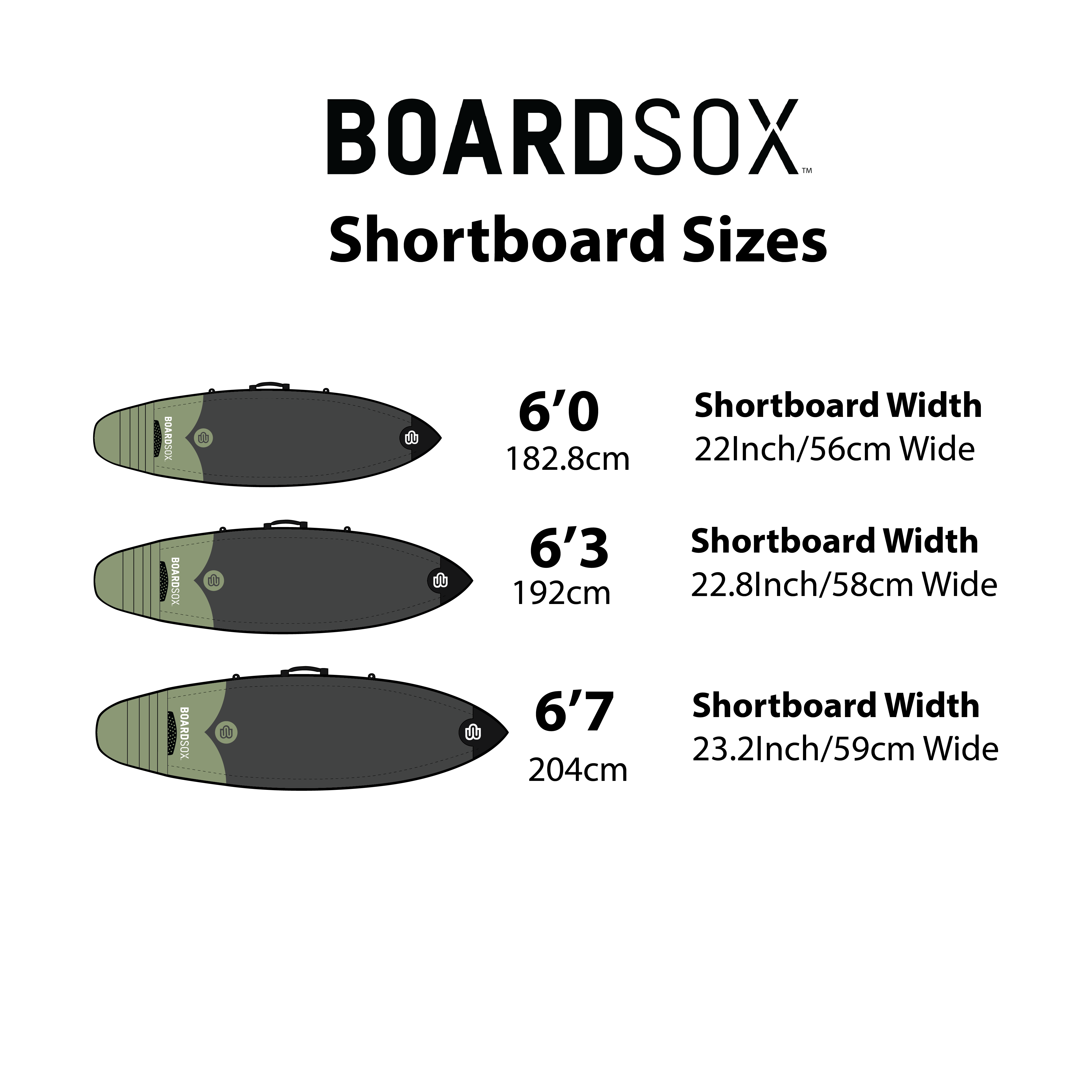 Pick the Boardsox length that matches or is just above your board’s length. Then check your board’s effective width against the shape guide: